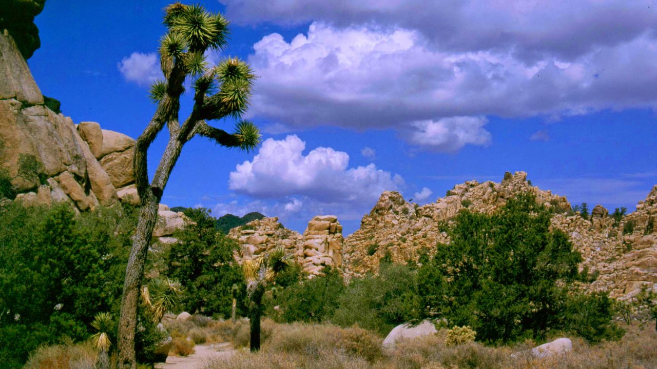 Travel along an old goldmine trail in the largest forest of Joshua Trees.